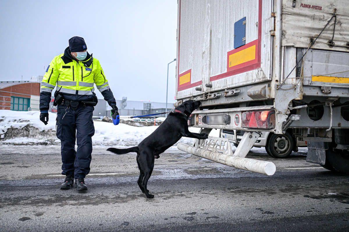 – Pelkästään tullikoiran esilläolo on näkyvä viesti siitä, että valvomme liikenteessä kulkevaa tavaraa, Perttu sanoo.
