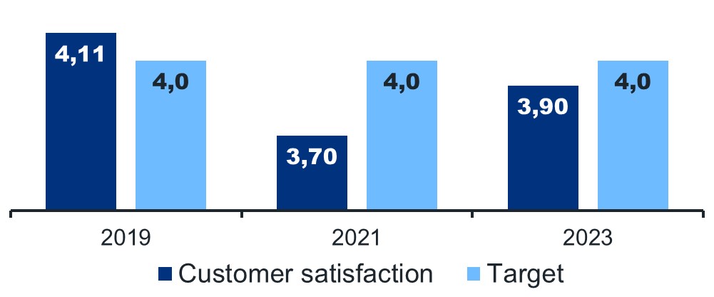 Customer satisfaction in customs clearance procedures, business customers (1–5)
