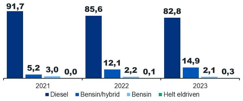 Fördelning av kilometer för tjänstekörning enligt driftkraft, %
