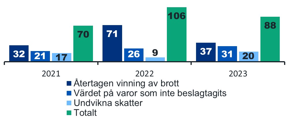 Genomslag av brottsbekämpning (miljoner €)