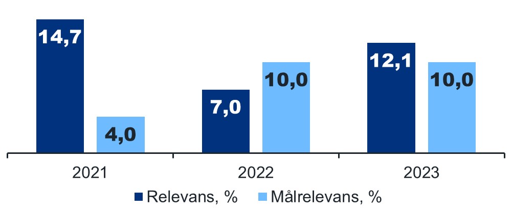 Relevans för inspektioner av varor, %