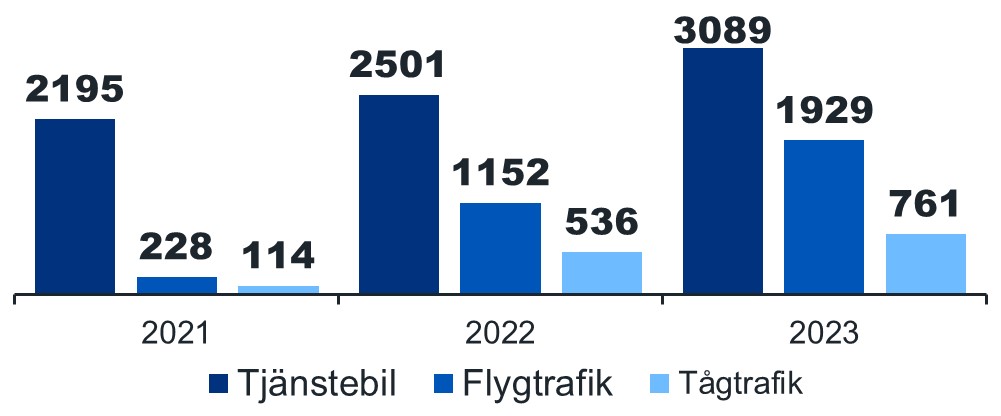 År 2023 steg inte flygkilometerna till 2019 års nivå, utan de har minskat med mer än en tredjedel från tiden före corona. Tågresorna har för sin del ökat jämfört med tidigare år.