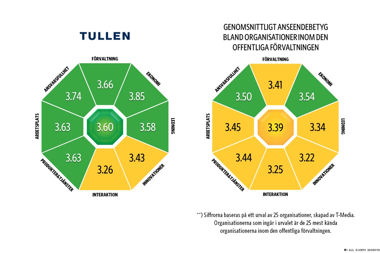 Vi följer utvecklingen av Tullens anseende med den årliga undersökningen Luottamus&Maine. I undersökningen bedöms Tullens anseende i fråga om för förvaltning, ekonomi, ledning, innovationer och växelverkan. Resultaten av alla teman bildar tillsammans helhetsbetyget för anseendet.